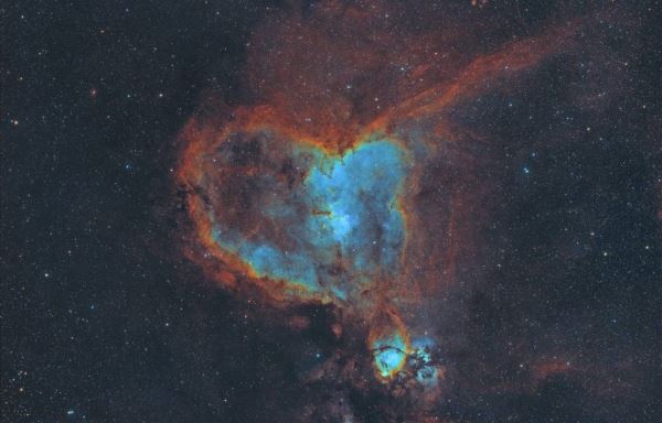 Астрофотограф Рональд Бречер получил впечатляющий кадр туманности Сердце, расположенной в спиральном рукаве Персея на расстоянии около 6000 световых лет, с помощью телескопа и специализированных фильтров.